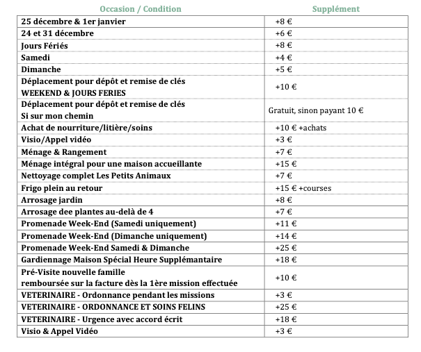 ▪ Caution pré-visite : 10 € (remboursée sur la 1re facture)