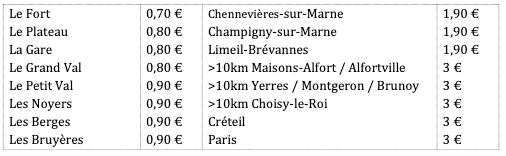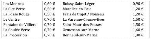 ▪ Selon zone : 0,30 € à 1,90 €/jour